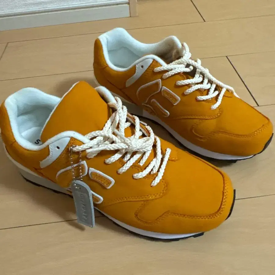오렌지색 스웨이드 소재의 러닝화. 두꺼운 신발끈과 러버 솔이 특징입니다. - 색상: 오렌지 - 소재: 스웨이드 - 스타일: 러닝화 - 신발끈: 두꺼운 신발끈 - 밑창: 러버 솔 방문해 주셔서 감사합니다. 사이즈 - 25cm 부속품 없이 신발만 판매합니다. 질문이 있으시면 언제든지 편하게 문의해 주세요!