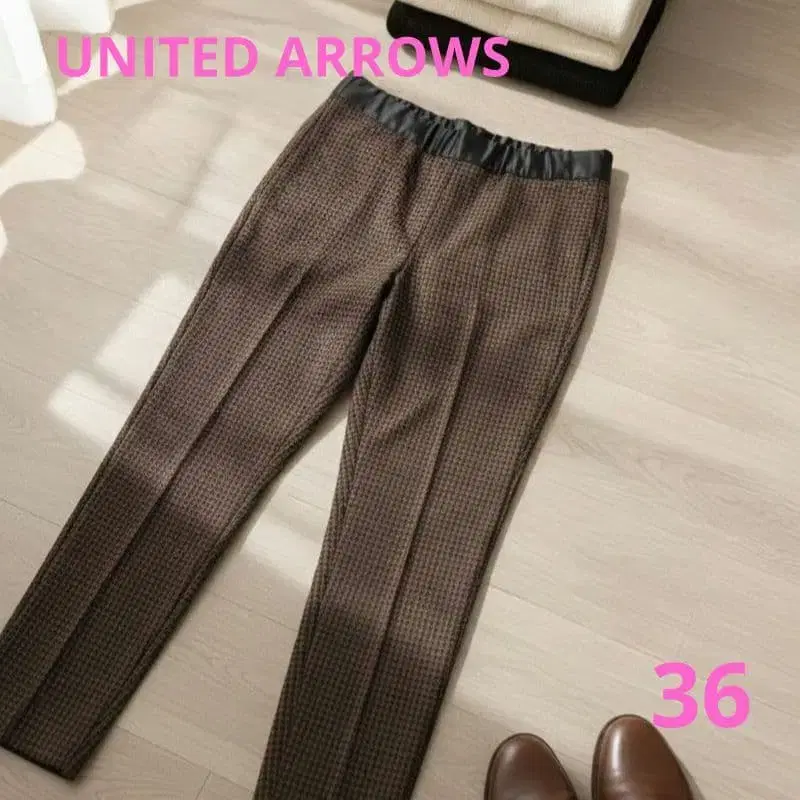 브라운 계열의 체크 무늬 캐주얼 팬츠입니다.