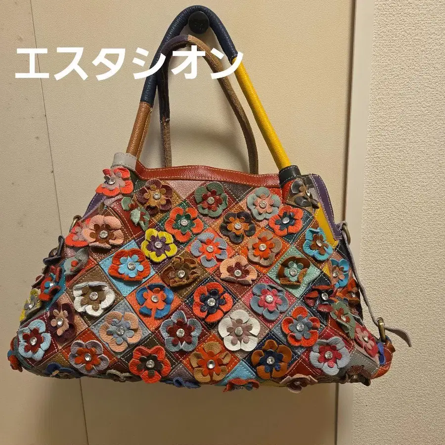 꽃무늬 패치워크 디자인의 가죽 토트백. - 브랜드: 에스타시온 - 디자인: 꽃무늬 패치워크 - 색상: 멀티 컬러 - 소재: 가죽 - 스타일: 토트백 - 핸들 색상: 여러 색상 - 특징: 장식적인 꽃 모티브 방문해 주셔서 감사합니다.