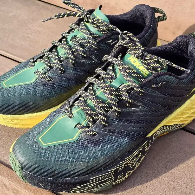 호카 오네오네 스피드고트 4입니다. 27cm입니다. 트레일 러닝으로 한 번, 일반 러닝으로 20여 회 사용했습니다.