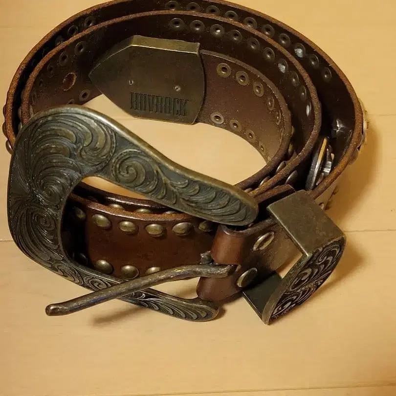 HUVROCK 스터드 스타 장식 가죽 벨트 브라운