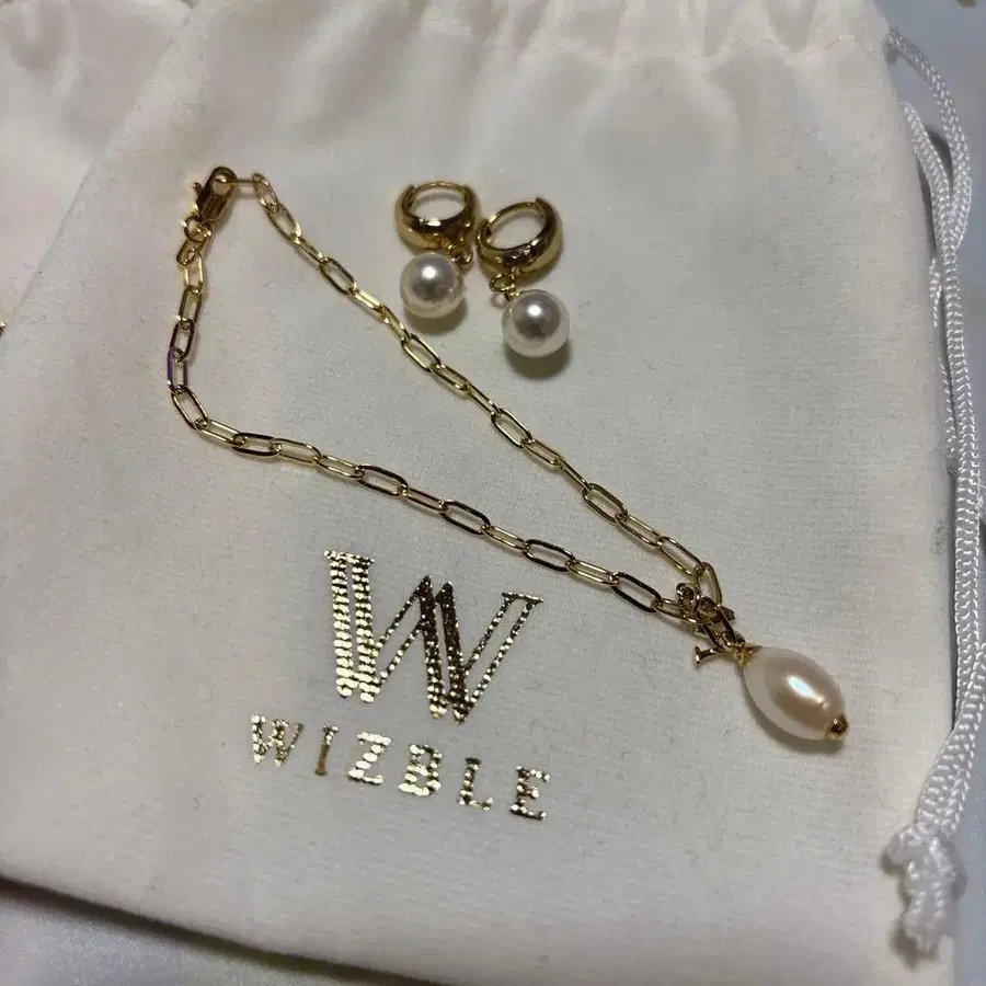 WIZZBLE 펄 장식 귀걸이와 H 모티브 팔찌