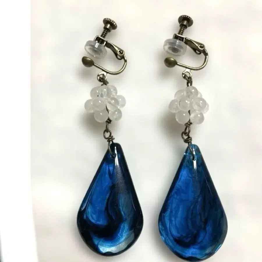 블루 색상의 독일제 아크릴 부품과 문스톤 귀걸이