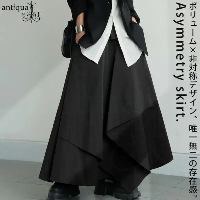 계산된 비대칭 디자인이 스타일을 격상시키는 스커트입니다.