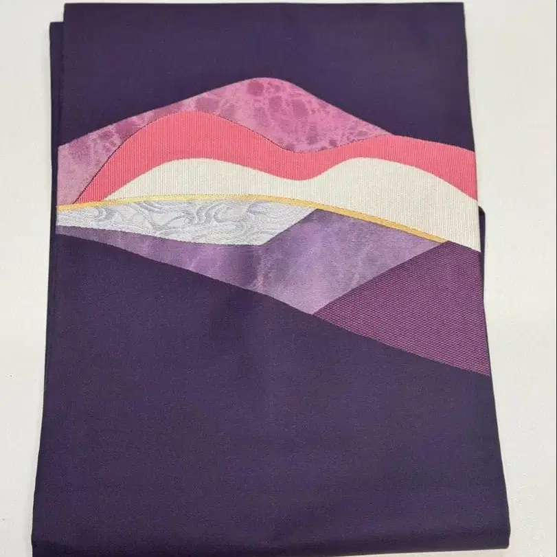 물결 모양의 무늬가 들어간 보라색 나고야 오비. - 색상: 보라색, 핑크, 화이트, 그레이 - 디자인: 물결 모양 무늬 방문해 주셔서 감사합니다.