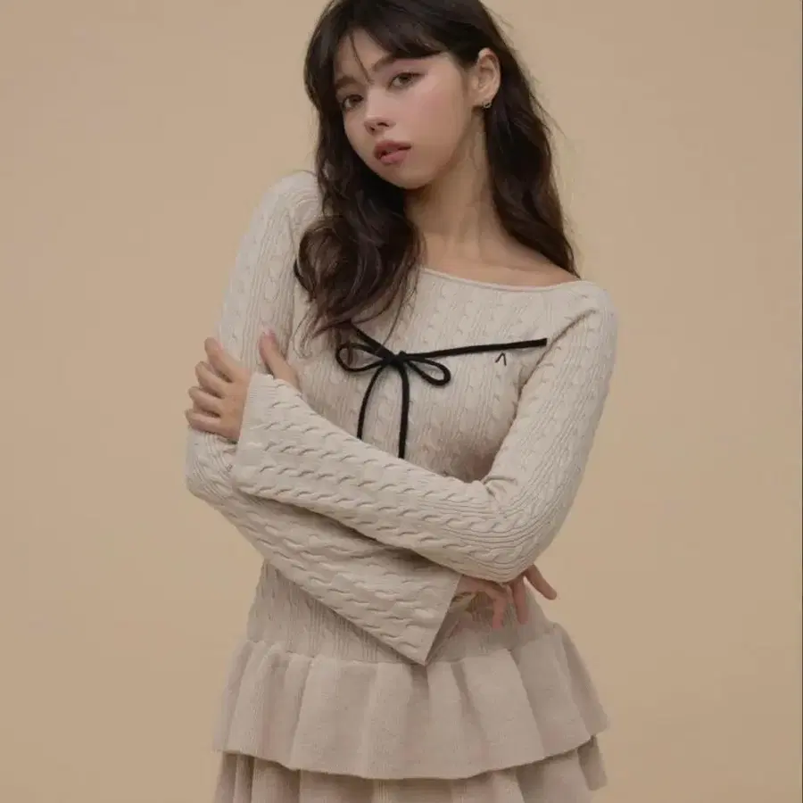 ANDMARY milky frill mini dress 베이지 색상입니다. 온라인으로 구매했으며, 한 번 착용했습니다. 니트 팬츠는 시착만 한 상품입니다. 종이 택은 제거했지만, 원하시면 동봉해 드릴 수 있습니다. ANDMARY 안드마리