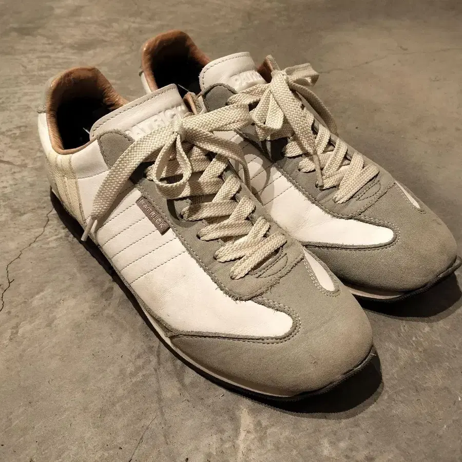 패트릭 가을/겨울 컬렉션의 가죽 스니커즈입니다. 고운 스웨이드 색감이 마음에 들었지만, 여러 사정으로 인해 처분하게 되었습니다. 밑창에 사진과 같이 벗겨짐과 마모가 있으므로, 수선하면 더 오래 신을 수 있을 것 같습니다. 상자 및 이미지에 보이는 슈트리는 부속되지 않습니다. 정가 20,900엔 편하게 댓글 등 부탁드립니다!