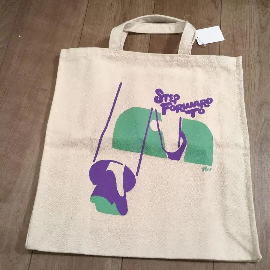 크림색 캔버스 소재에 그래픽 프린트가 들어간 빅 토트백.