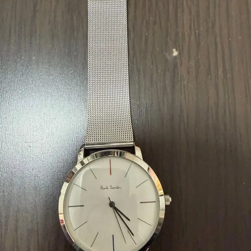 실버 메쉬 밴드와 다색 바늘이 특징인 쿼츠 손목시계. 많이 사용하지 않았지만 흠집과 얼룩이 있습니다. 양해 부탁드립니다. 배터리가 없어 작동하지 않으므로, 배터리를 교체하여 사용해 주세요. - 브랜드: Paul Smith - 색상: 실버 - 밴드 소재: 메쉬 - 다이얼 컬러: 실버 - 바늘 색상: 블랙, 빨간색, 파랑, 그린 - 밴드 타입: 클래스프식 방문해 주셔서 감사합니다.