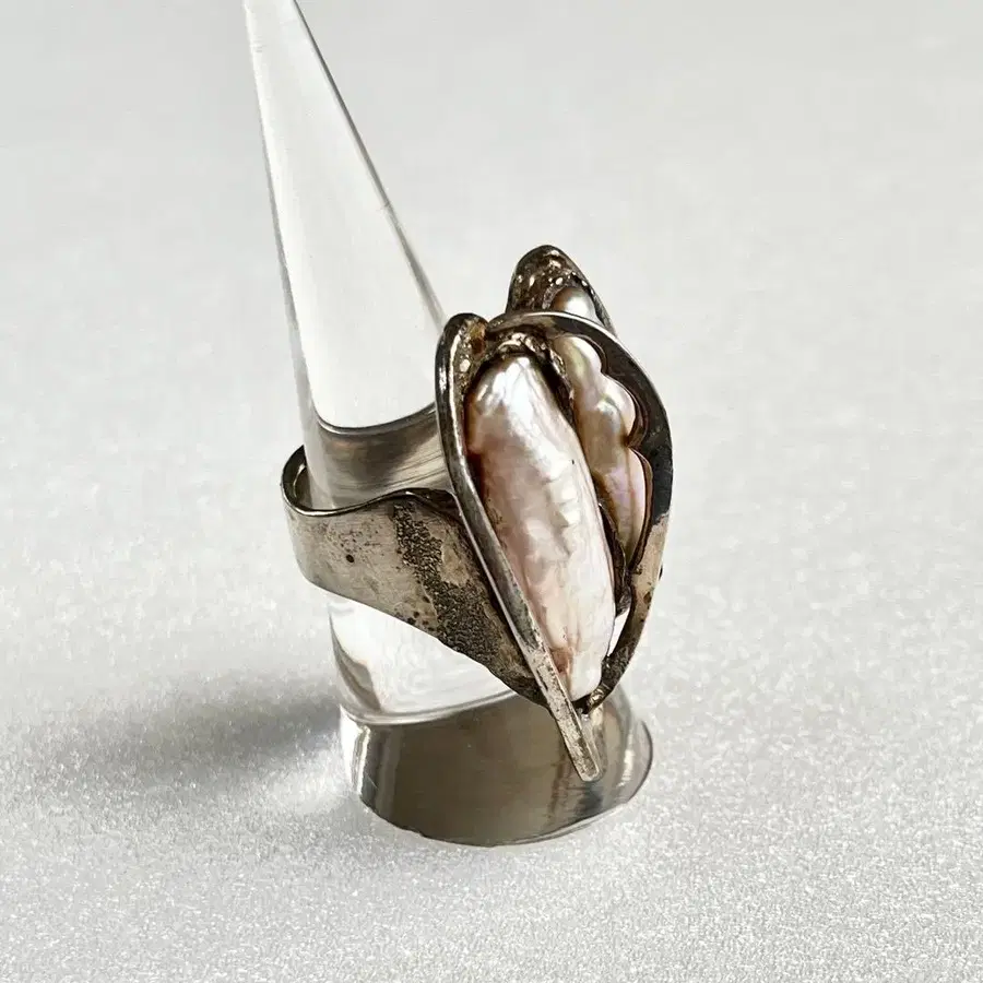 하나뿐인 디자인의 실버 반지입니다. 조개 진주로 추정되는 유기적인 표정의 부품을 사용하여, 입체적이면서 오브제 같은 존재감이 있는 디자인입니다. 양산품에는 없는 왜곡과 음영이 있으며, 아트 피스나 빈티지 주얼리를 좋아하시는 분께 추천합니다. 소재는 각인으로 보아 SILVER입니다. 진주 부분은 조개 진주로 추정되나, 상세 불명으로 인해 이미지를 확인해 주십시오. 볼륨감이 있으면서도 손가락에 맞는 조형으로 착용 시 인상도 매우 개성적입니다. [ 사이즈 상세 ] 반지 사이즈: 약 12호 세로: 약 38mm 가로: 약 24mm 중량: 약 18.5g 각인: SILVER ※ 약간의 오차는 용서해 주십시오. ※ 빈티지 제품이므로, 약간의 흠집이나 탁함 등은 질감으로 이해해 주십시오.