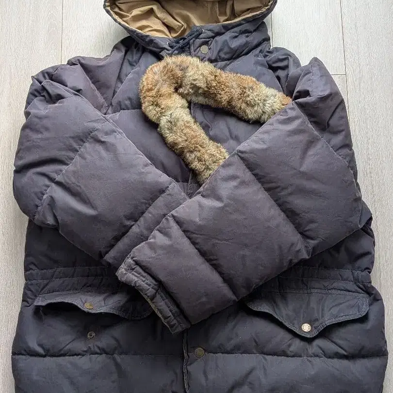 네이비 색상으로 사용하기 쉬운 컬러링의 C.P. COMPANY 다운 자켓, 퍼가 달린 후드가 특징입니다. MASSIMO OSTI 본인 시기의 아이템으로, 매우 귀한 상품입니다.