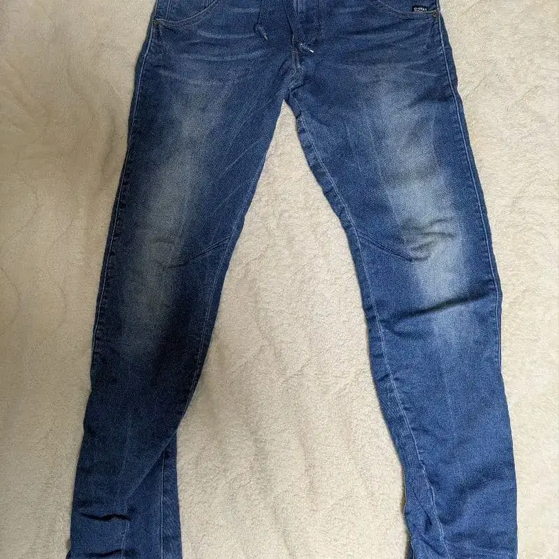 드로우 스트링이 있는 다크 블루 스키니진, 페이드 가공으로 스타일리시합니다.