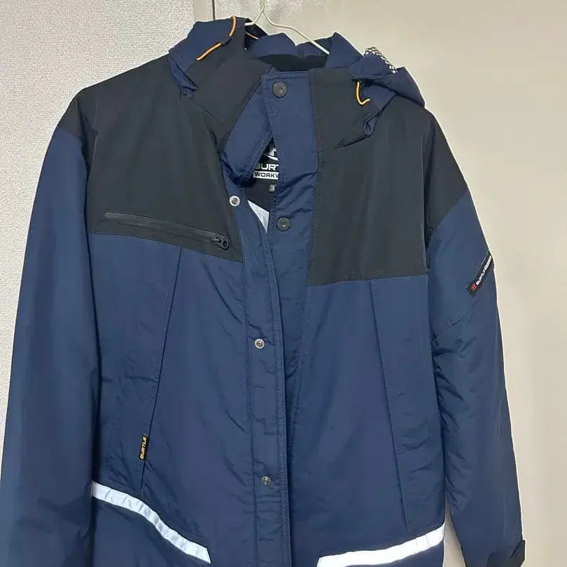 미사용 새상품 퍼 카라 부착 네이비 점퍼 작업복 등 S