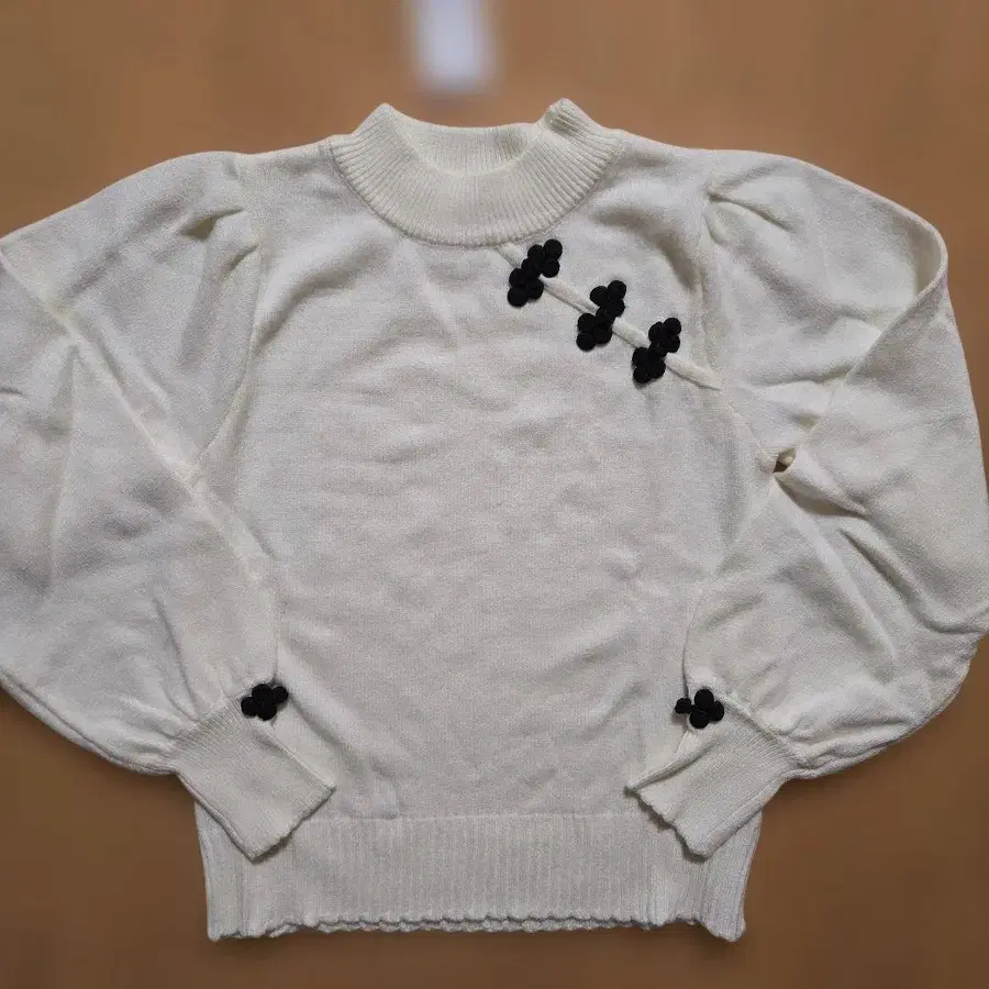 아이보리 플라워 장식 퍼프 슬리브 니트
