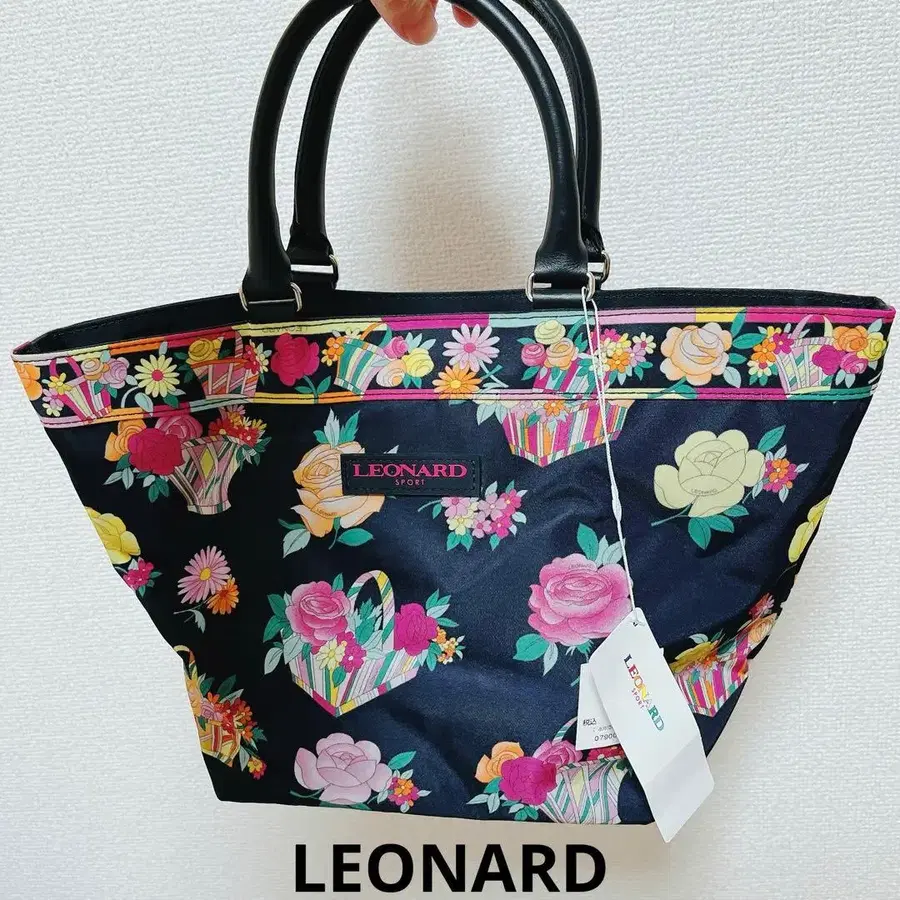 LEONARD 미사용 네이비 색상에 컬러풀한 플라워 프린트가 들어간 토트백, 가죽 느낌의 핸들 포함. - 브랜드: LEONARD - 색상: 네이비 - 디자인: 플라워 프린트 - 핸들: 소가죽 - 사이즈: 21X23 바닥:15 ¥33000 상품입니다. 방문해 주셔서 감사합니다. 정리번호 X