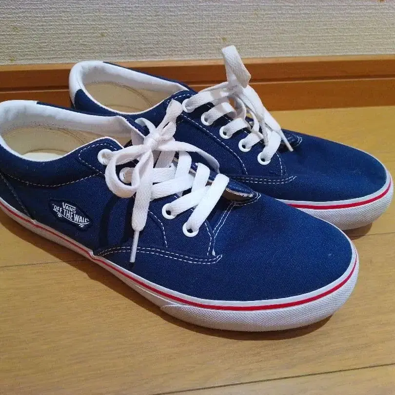 네이비 VANS OFF THE WALL 스니커즈, 화이트 신발끈과 빨간색 밑창이 특징입니다. - 브랜드: VANS - 모델명: OFF THE WALL - 색상: 네이비 - 특징: 화이트 신발끈과 빨간색 밑창 디자인 방문해 주셔서 감사합니다.