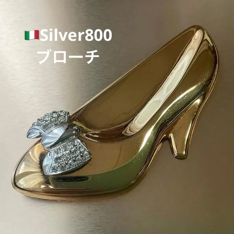 이탈리아제 앤티크 브로치 신발 실버 800 각인 있음 빅 사이즈 골드