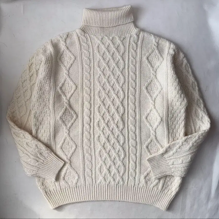 아일랜드제 터틀넥 아란 니트 스웨터 L 피셔맨