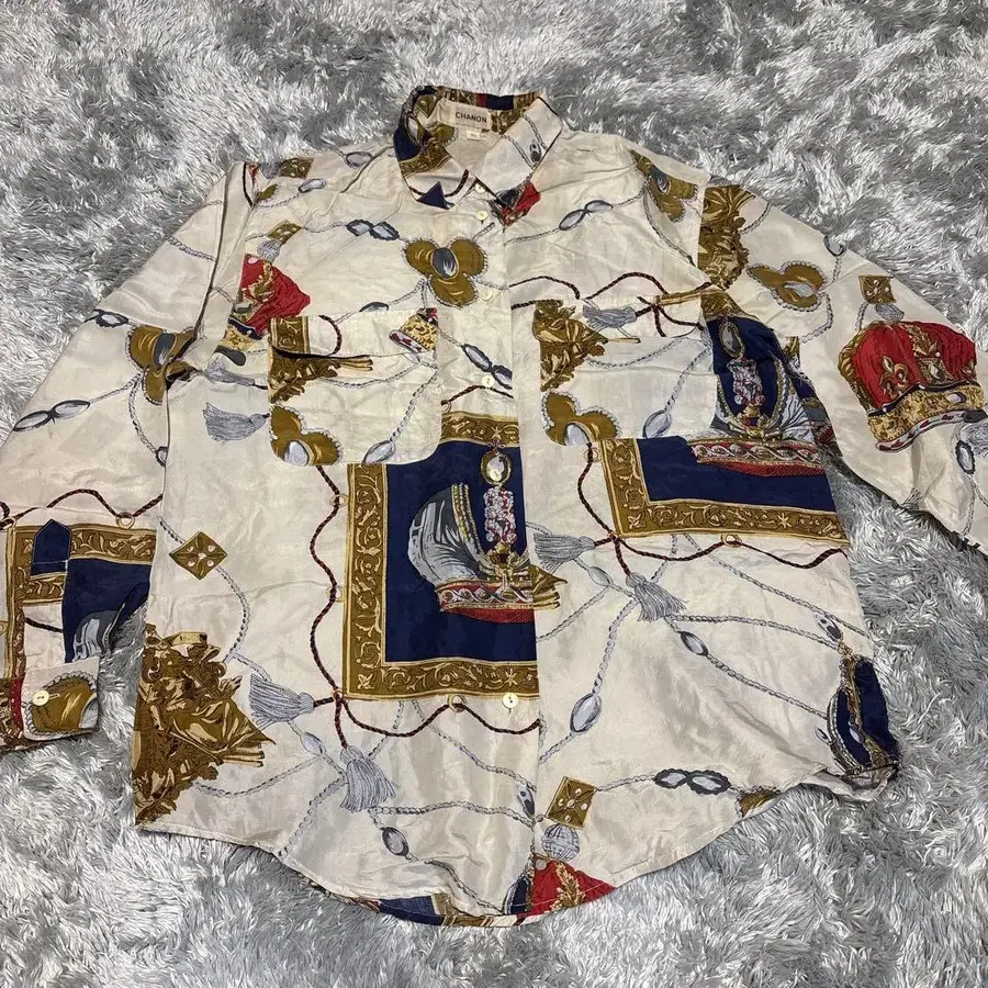CHANON 다색 패턴 앤티크 셔츠 실크 셔츠