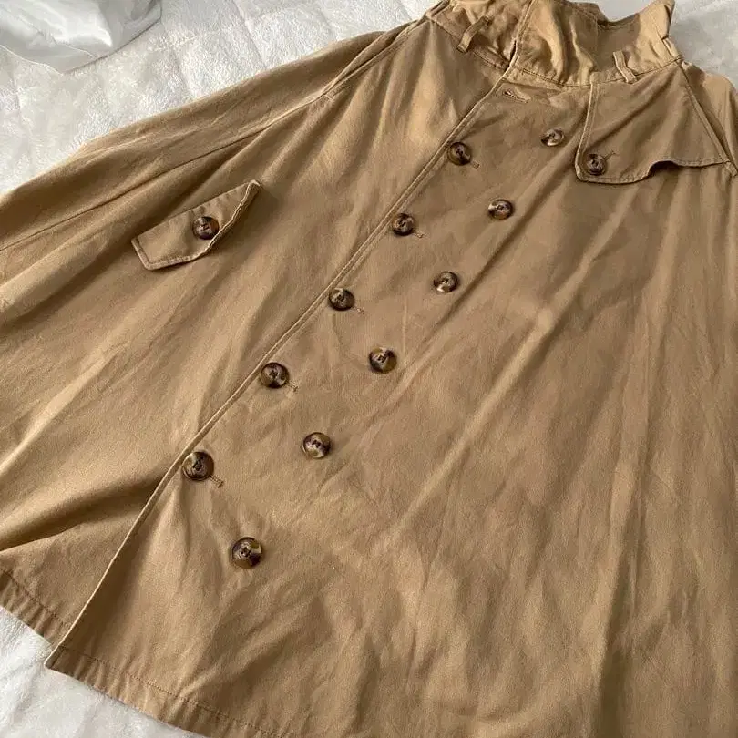 베이지 색상의 더블 브레스트 디자인, 포켓이 달린 캐주얼 롱 스커트입니다.