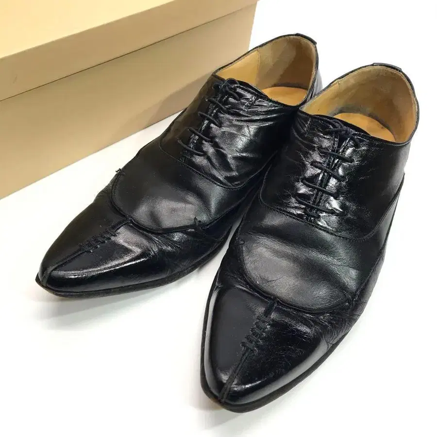 KATHARINE HAMNETT LONDON의 세련된 드레스 슈즈입니다. 롱노즈 실루엣의 아름다운 가죽 신발로, 발끝에서 존재감을 선사합니다. 슬랙스뿐만 아니라 청바지 등 캐주얼한 스타일에도 잘 어울리는 일품입니다.