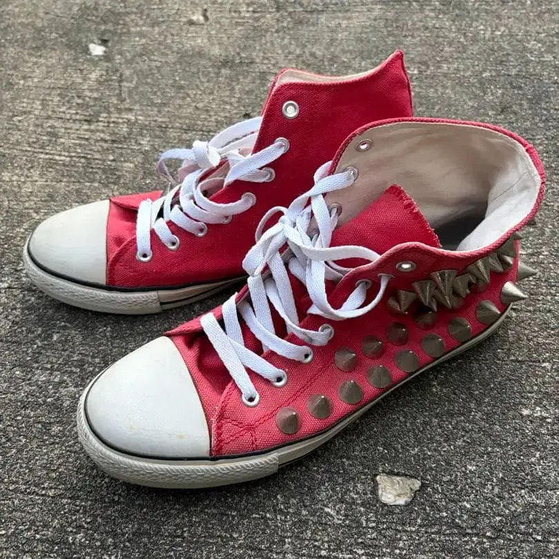 글래드 뉴스 스터드 스니커즈입니다. 흔히 볼 수 없는 스니커즈라고 생각합니다. 무게감 있는 스터드가 존재감을 자아냅니다. 패션에 포인트를 주고 싶은 분께 추천합니다. 펑크를 좋아하는 분께는 꼭 손에 넣어 보시길 바랍니다. 사이즈 - 27cm