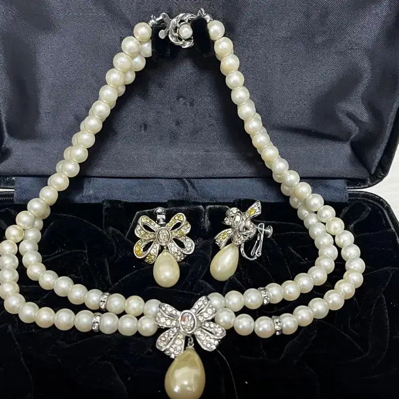 펄과 크리스탈의 리본 모티브 목걸이와 귀찌 세트, 포멀한 장소에 최적. 브라이덜용 렌탈품 중고입니다. - 소재: 펄, 크리스탈 - 디자인: 리본 모티브의 목걸이와 귀찌 세트 - 색상: 화이트, 실버 - 스타일: 포멀, 브라이덜 - 부속품: 전용 케이스 방문해 주셔서 감사합니다.
