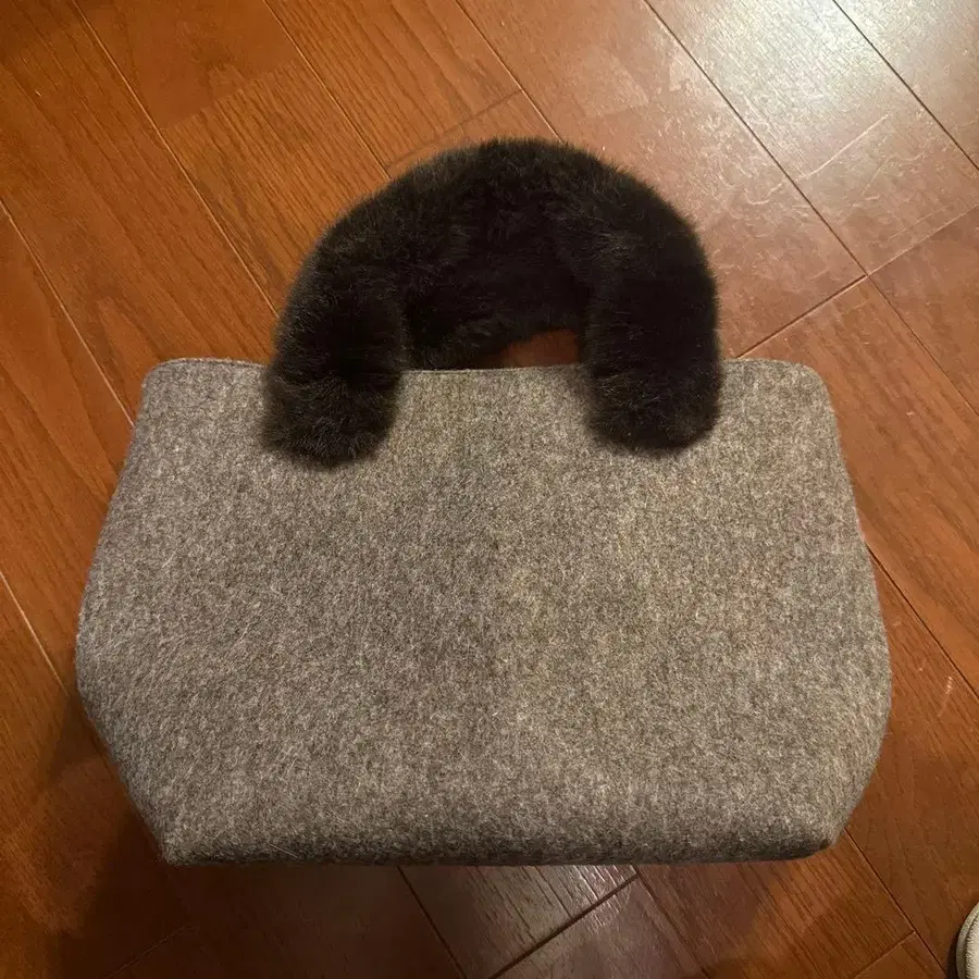 [미사용 새상품] 퍼 핸드백 리본 포함 그레이 베이지