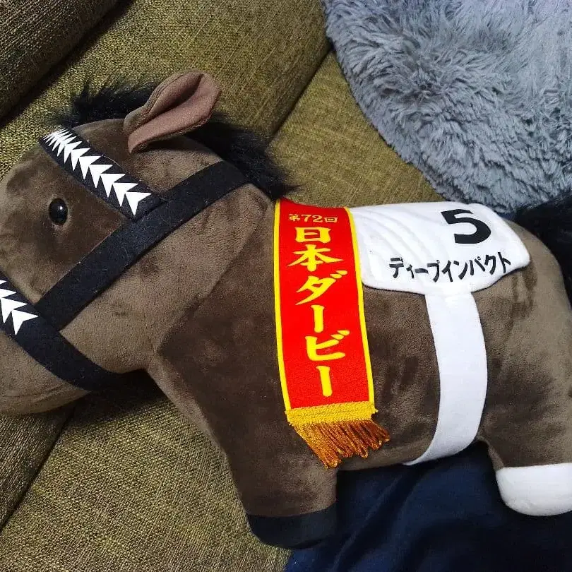 일본 더비의 딥 임팩트 봉제 인형, 번호 5 포함. - 캐릭터명: 딥 임팩트 - 경마 이벤트명: 일본 더비 - 번호: 5 장기 자택 보관으로 인해 약간의 얼룩이 있습니다. 방문해 주셔서 감사합니다.
