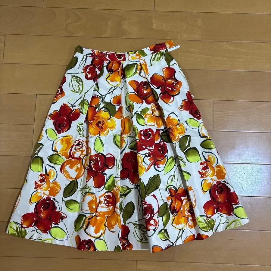 플라워 프린트 디자인의 플레어 스커트입니다. 원단이 탄탄하여 매우 귀여운 스커트입니다. 거의 착용하지 않아 상태는 양호하지만, 개인적인 판단이므로 신경 쓰이는 분은 구매를 자제해주세요!!!