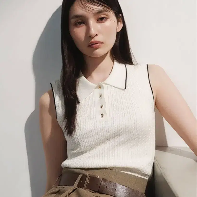[택 포함 새상품] 슬리브리스 케이블 니트 폴로 아이보리 프레이 아이디