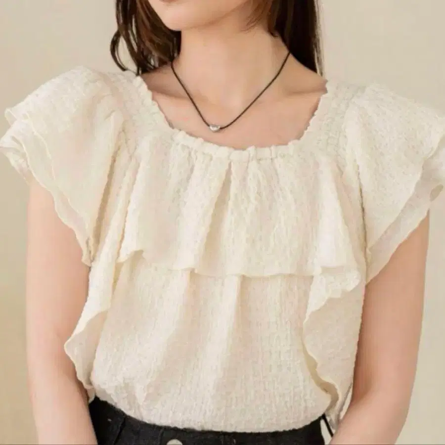 색상은 아이보리이며, 1회만 방에서 맞춰보기 위해 착용한 것입니다. hinari 히나리 색상/넥 - V넥 반팔 스퀘어넥 마루