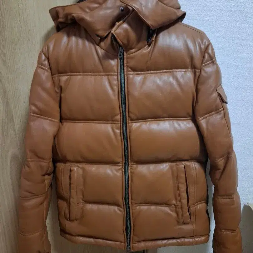 잭 로즈 브라운 다운 자켓 천연 가죽 양가죽 가죽