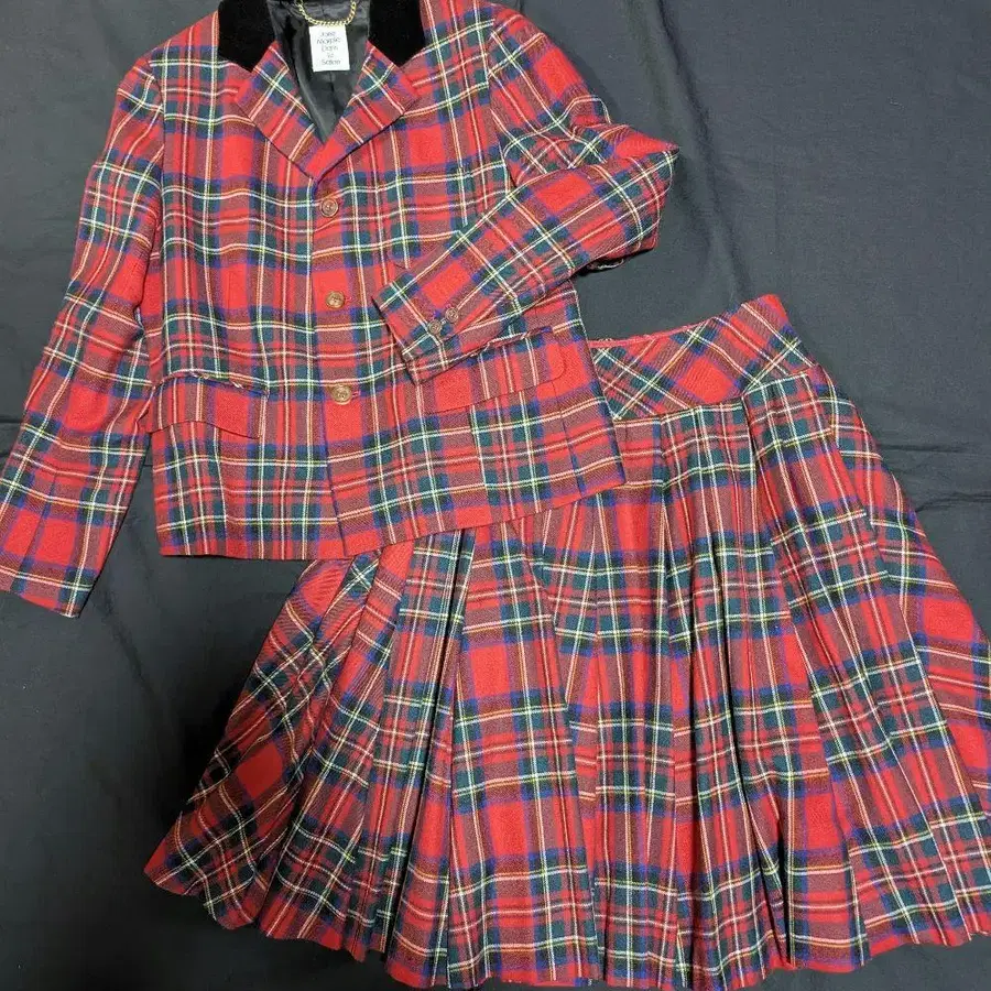JaneMarple의 2022년 출시 타탄 체크 자켓과 스커트입니다. 색상은 로얄입니다. ◯ 울 타탄 카나비 자켓 (동루) 1회 착용, 하자 없는 새상품급. 클리닝 완료. ◯ 울 타탄 턱 플레어 스커트 택 포함, 미착용 새상품급.