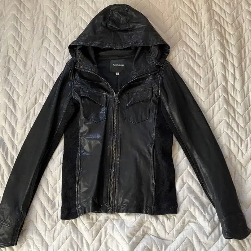 BUFFALO BOBS 버팔로 밥스 후디, 후드 부착 가죽 자켓, 램 가죽, 블랙, y2k grunge, 후드 탈부착 가능, 더블 지퍼