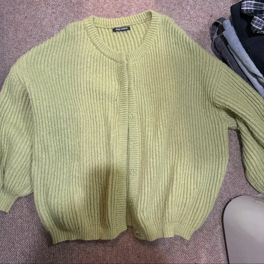 SPRAY PREMIUM 립 편직 가디건 라이트 그린