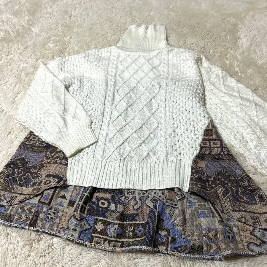 사이즈 - FREE SIZE TITICACA 티티카카 이종 소재 니트 스웨터/튜닉 하이넥 사이즈 F 어깨 너비 46cm 전후 가슴 너비 62cm 기장 앞 60cm 뒤 67cm 개인 측정 and 검품을 양해 부탁드립니다.