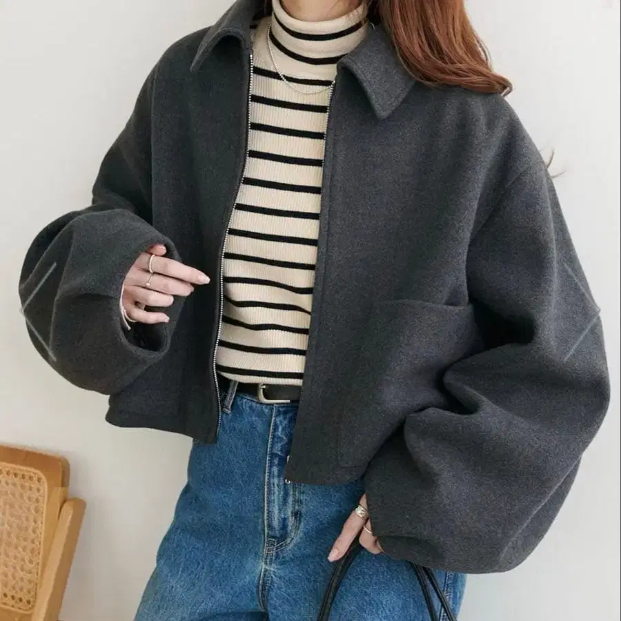 소매의 턱과 컴팩트한 기장이 둥글고 부드러운 실루엣을 연출합니다.