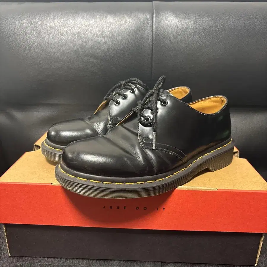닥터마틴 3홀 제품입니다. 구제 의류로 구매했습니다. 비교적 상태가 좋으며, 소중히 신고 닦으며 케어도 확실히 해왔습니다. 2000년대 후반 제품으로 광택이 다른 것들과 달리 멋지다고 생각합니다. 실제 사이즈는 250이지만, 가죽 신발이므로 스니커즈 255~265 사이즈를 신는 분들이 맞을 거라고 생각합니다. 저는 265 사이즈로 딱 좋았습니다.