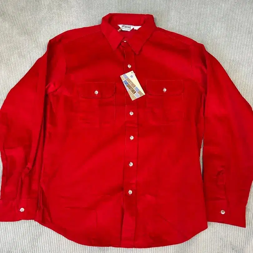 파이브 브라더의 선명한 빨간색 코듀로이 셔츠, 포켓 2개 부착. - 색상: 빨간색 - 소재: 코듀로이 - 포켓 수: 2 - 브랜드: FIVE BROTHER 방문해 주셔서 감사합니다. 사이즈 - L