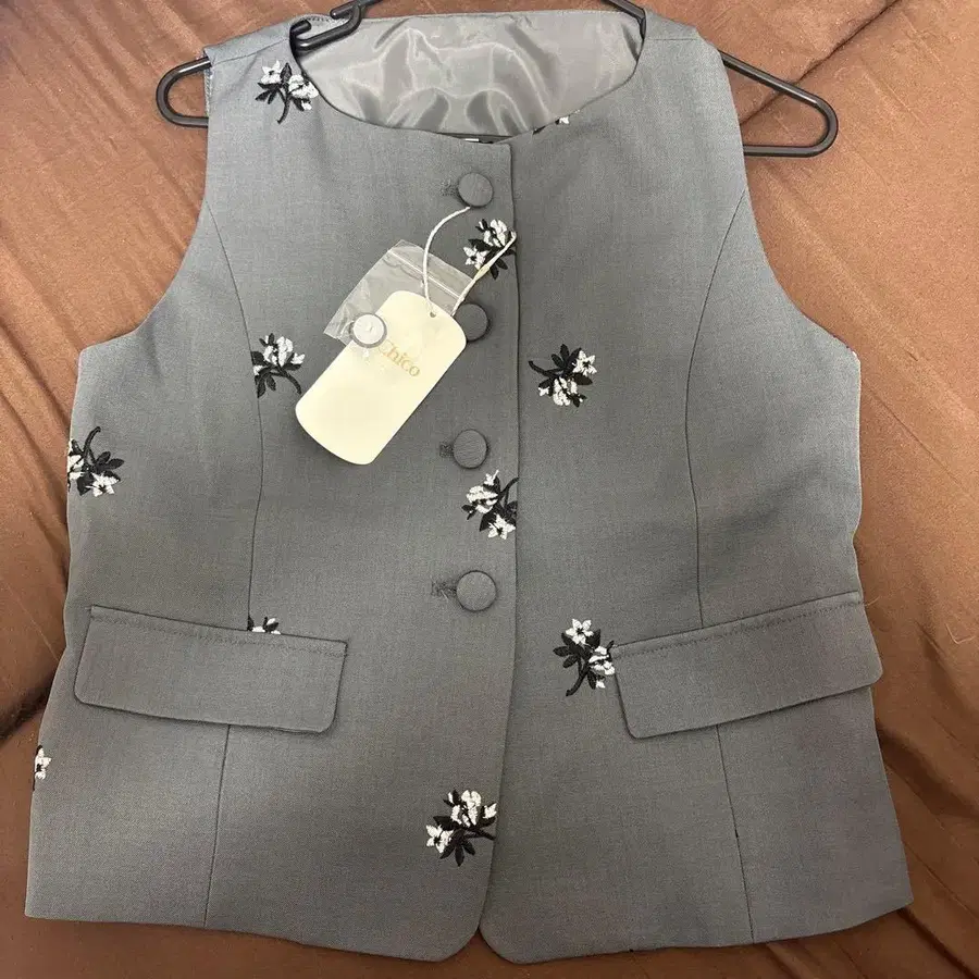 chico 플라워 자수 베스트 그레이 택 포함 새상품 F