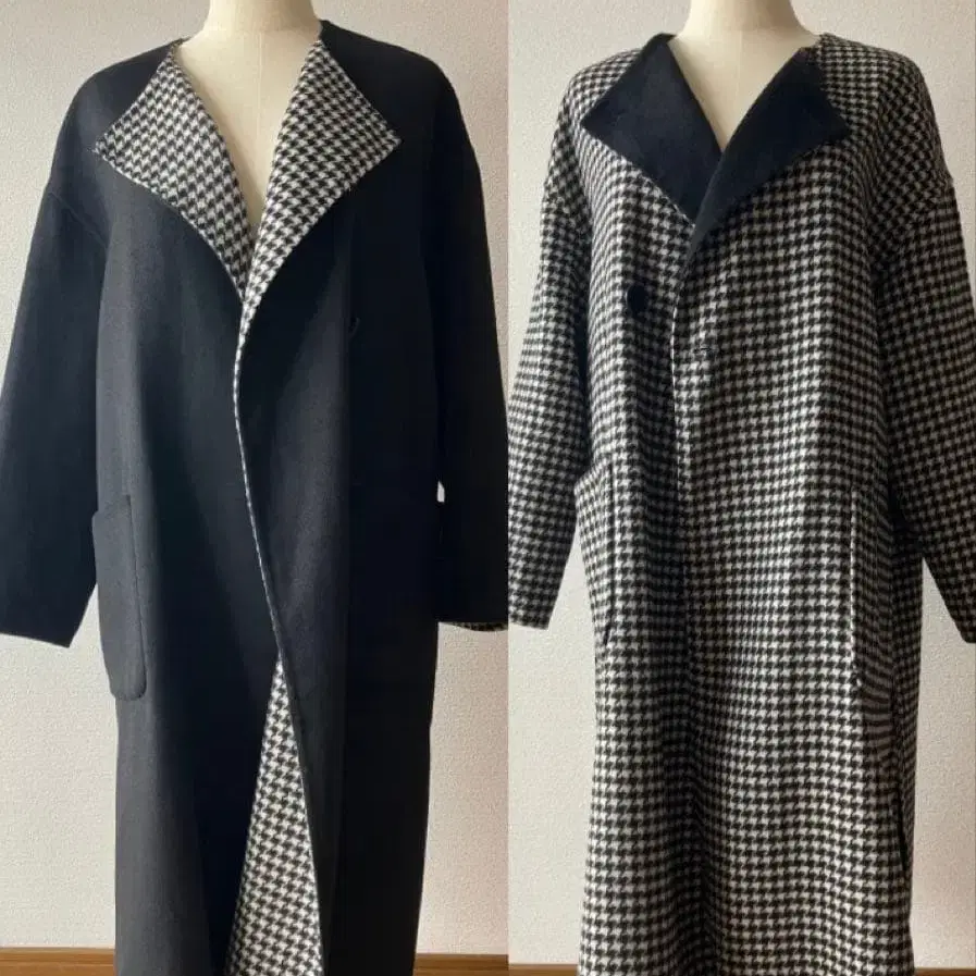 [새상품급] KBF 하운드투스 체크 노카라 리버서블 코트