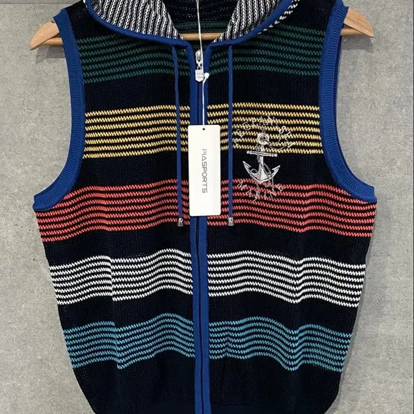 택 포함 새상품 정가 27,300엔 PIA SPORTS 피아 스포츠 로고 자수 메쉬 니트 베스트 집업 후디 보더 3 사이즈 남성용