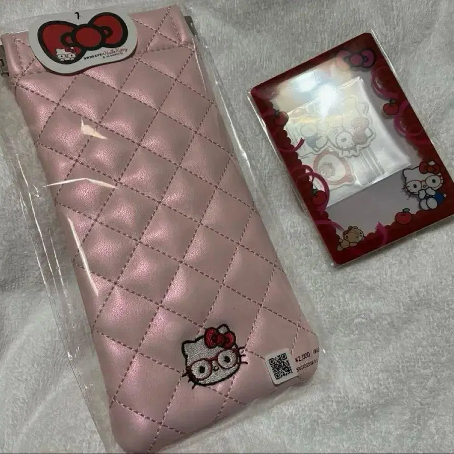 OWNDAYS의 헬로키티 외출 퀼팅 소프트 케이스와 스티커 & 레터형 카드 케이스입니다. 안경 케이스 키티 헬로키티 키티 스티커 씰 온데이즈 콜라보 온데이즈 Zoff 산리오 콜라보