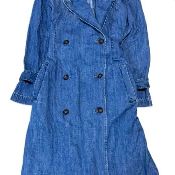 데님 블루 더블 브레스트 트렌치 롱 코트