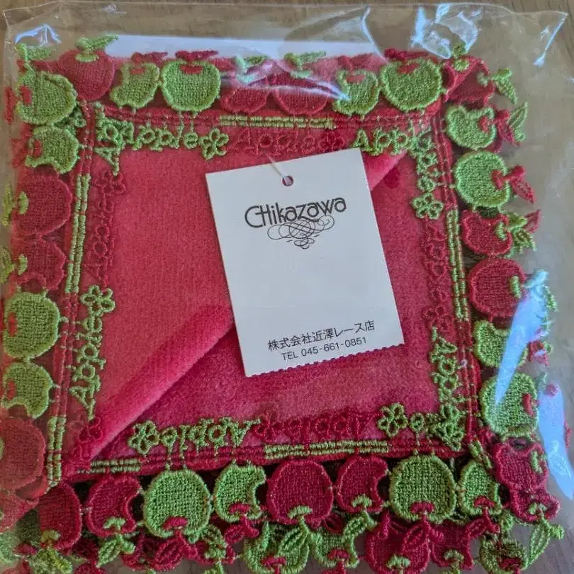 핑크와 그린 자수가 놓인 정사각형 손수건. - 브랜드: 치카자와 - 색상: 핑크, 그린 - 디자인: 자수 - 모양: 정사각형 방문해 주셔서 감사합니다.