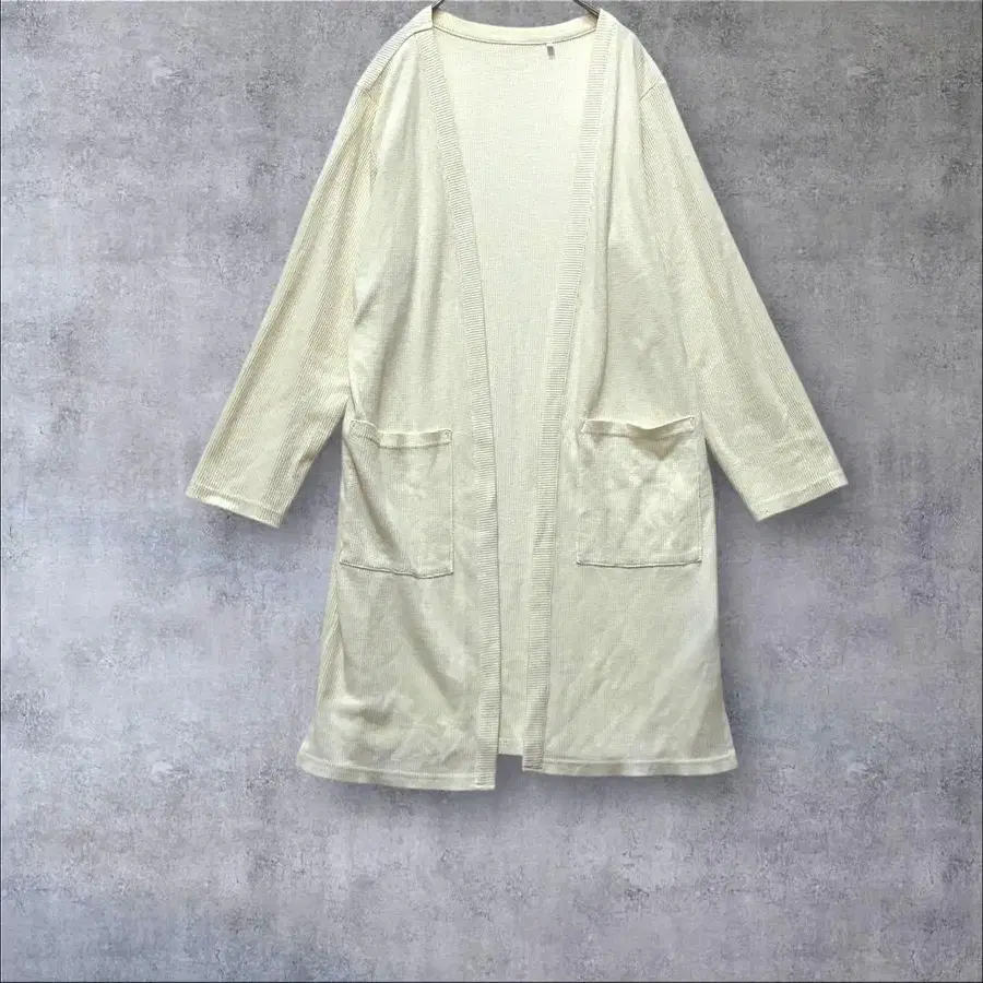 청결감이 넘치는 화이트 롱 가디건으로, 와플 원단의 부드러운 질감이 성숙/러블리한 릴랙스 스타일을 연출합니다 ♪