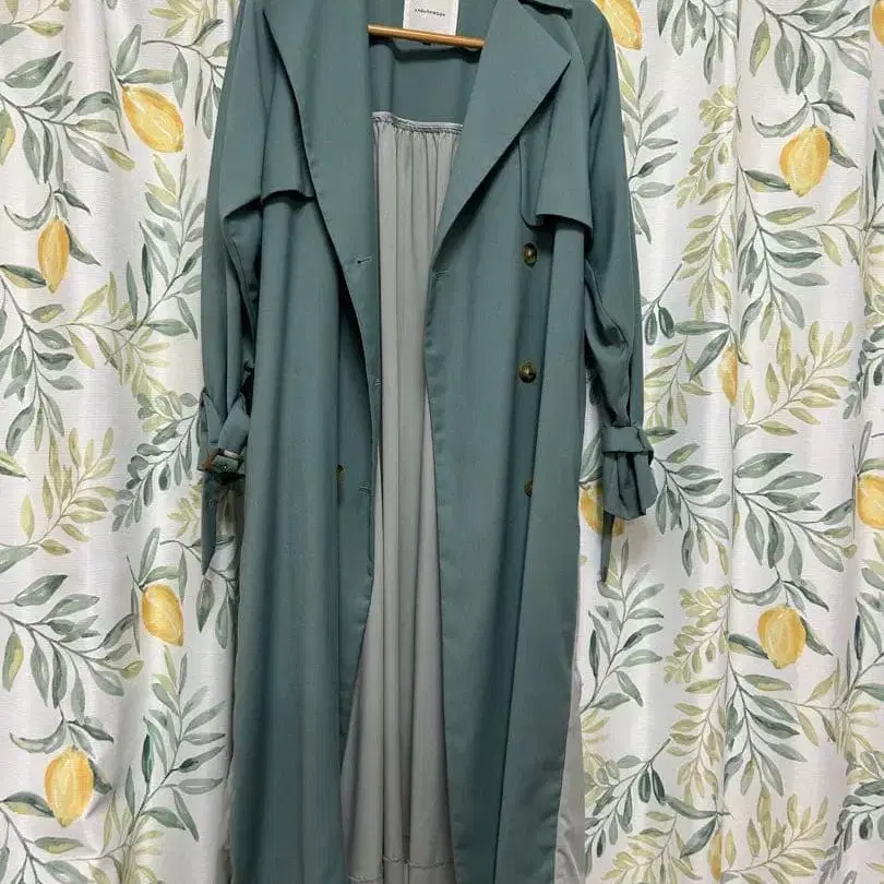 사이즈 - S 가슴 부분에 얼룩이 있습니다. 사진을 확인 부탁드립니다. 민트 그린의 산뜻한 트렌치코트입니다.