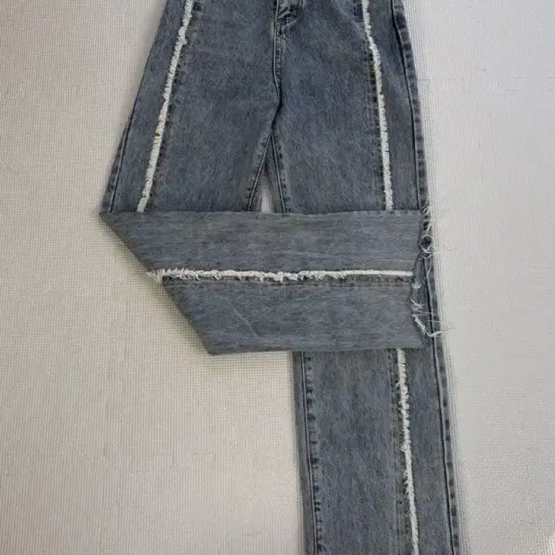 프린지 디자인의 그레이 데님 팬츠 - 브랜드: Poem - 디자인: 프린지 데님 팬츠 - 색상: 라이트 블루 - 사이즈: S 허리: 32 힙: 45 기장: 104 허벅지: 26 밑단: 22 밑위: 34 2, 3회 착용하여 미사용에 가깝습니다. 신장 158cm, 보통 체형에 잘 맞습니다.
