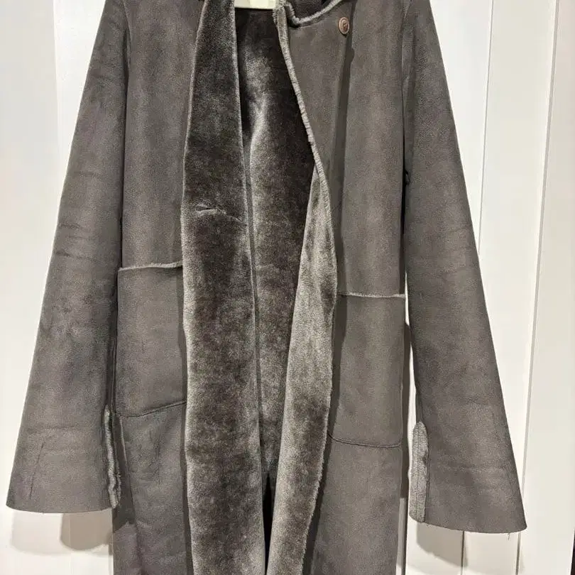 페이크 무스탕 그레이 롱 코트